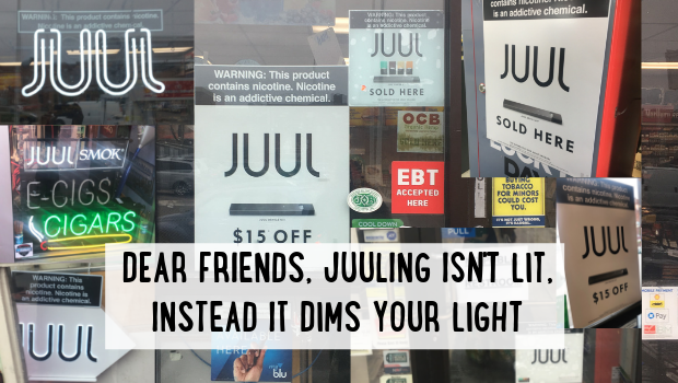 1st place: “Dear Friends, Juuling Isn’t Lit, Instead it Dims your Light”